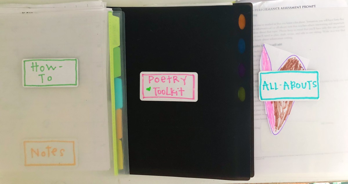 Much like the way Brett tends to our apartment, bringing his tool bag from room to room, we tend to our writers during writing workshop. Each day, we gather or create tools for strategy groups, minilessons, and conferences. I often find myself, like Brett, running back and forth to find, recreate, or make new tools. Brett’s tool bag inspired me to make a writing toolkit. A home for writing workshop essentials, saving me time and stress, allowing me to maximize time with writers.
