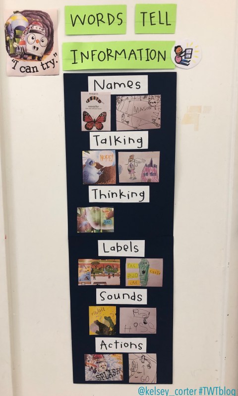 Yet, there’s the fact that many books have words, and kids notice that. There’s an expectation that from their very first year in school, kids write with both pictures and words. Rubrics and progressions rate writing, categorize writers, based on volume and accuracy of words. To kids, to families, to educators, these can lead to the false notion: “The more words, the better the writing. A writer who writes many words = a stronger writer.” It’s no wonder we, educators, caregivers, stress about the words kids are (or are not) writing.